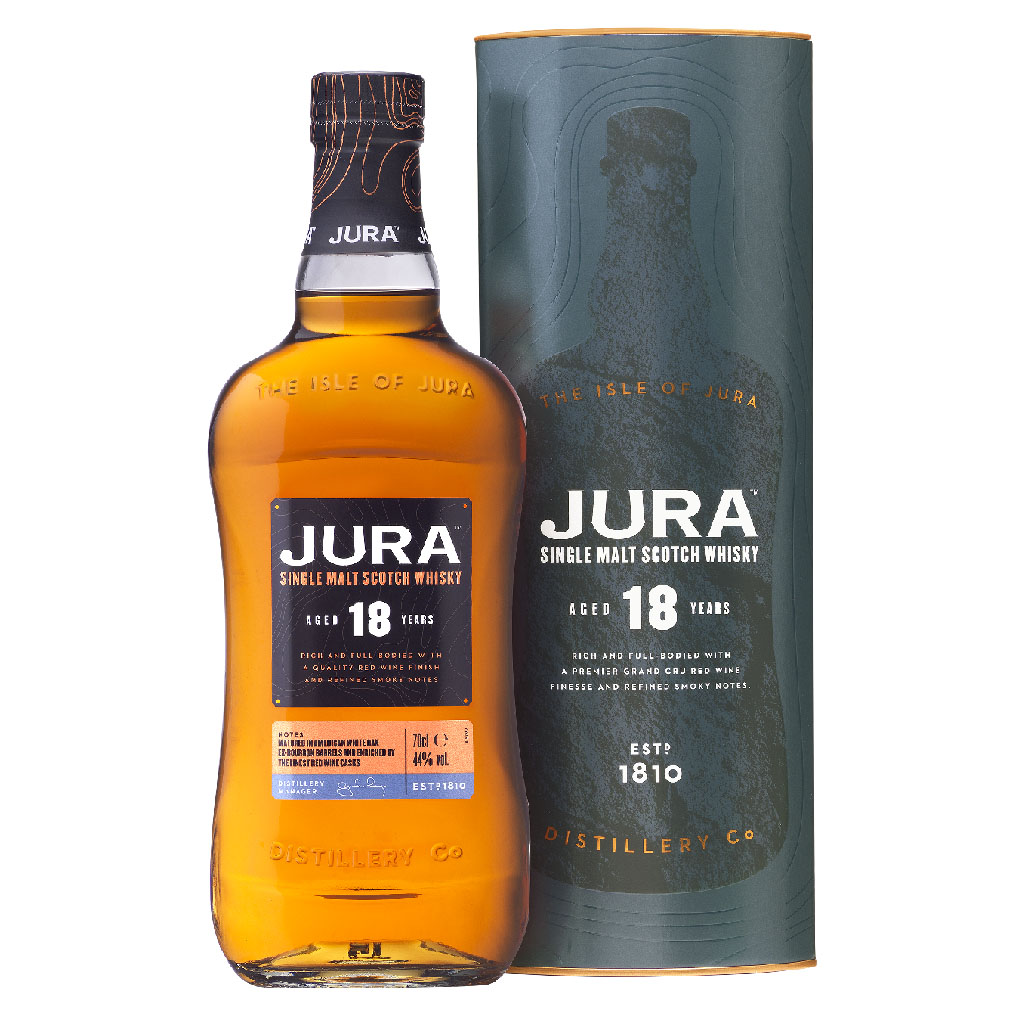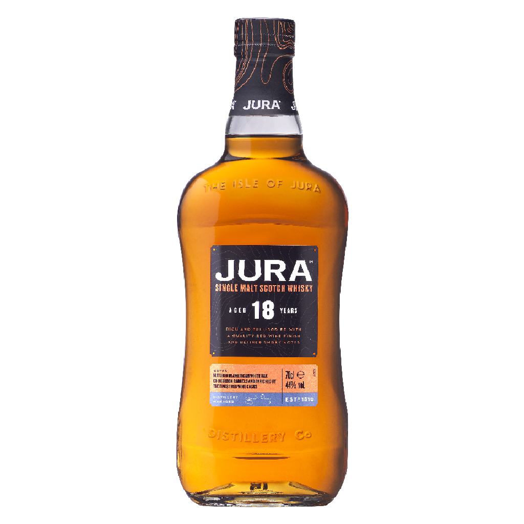 Isle of Jura 18 Anos é um Whisky intemporal com acabamento em tonéis de vinho tinto, garantido para completar qualquer coleção.
