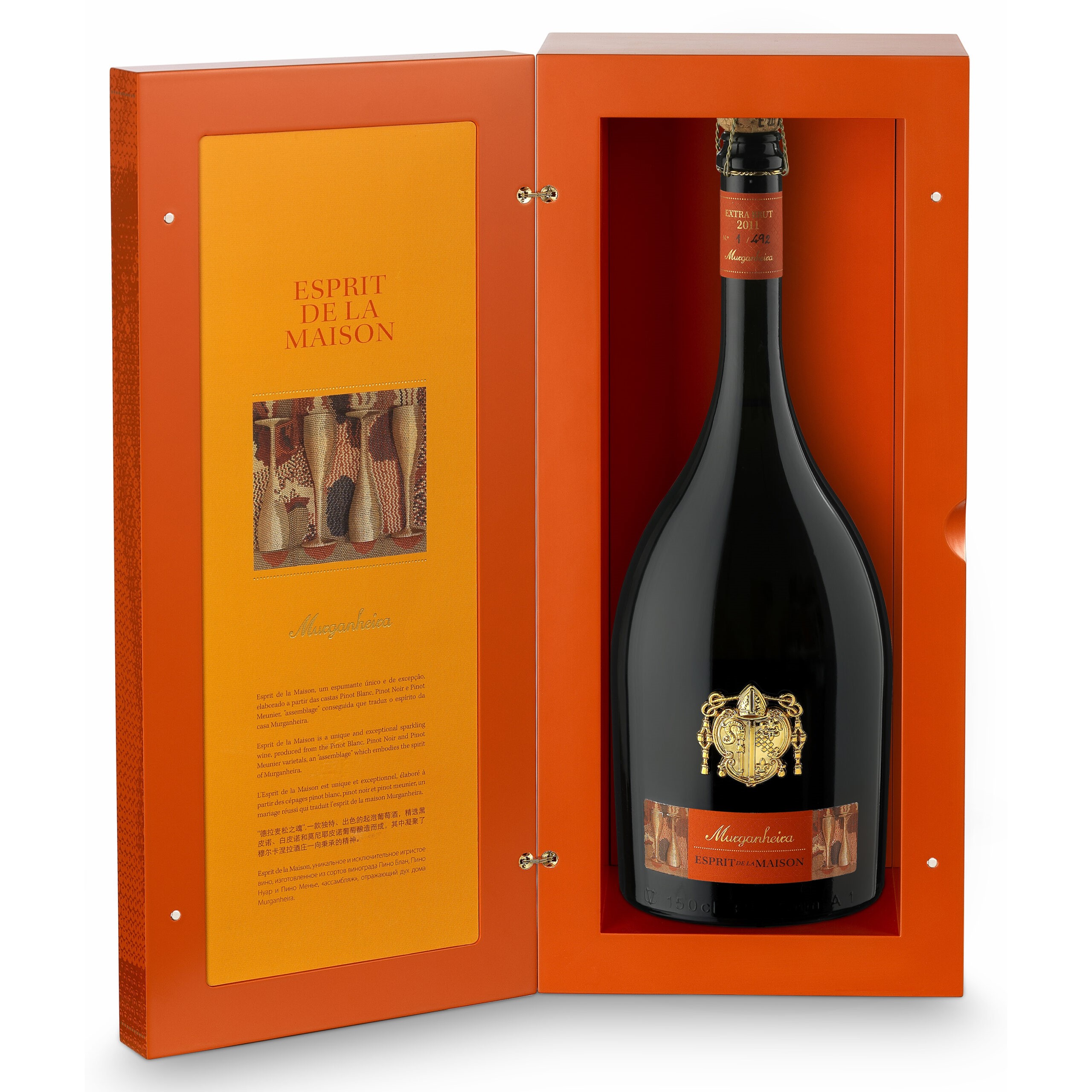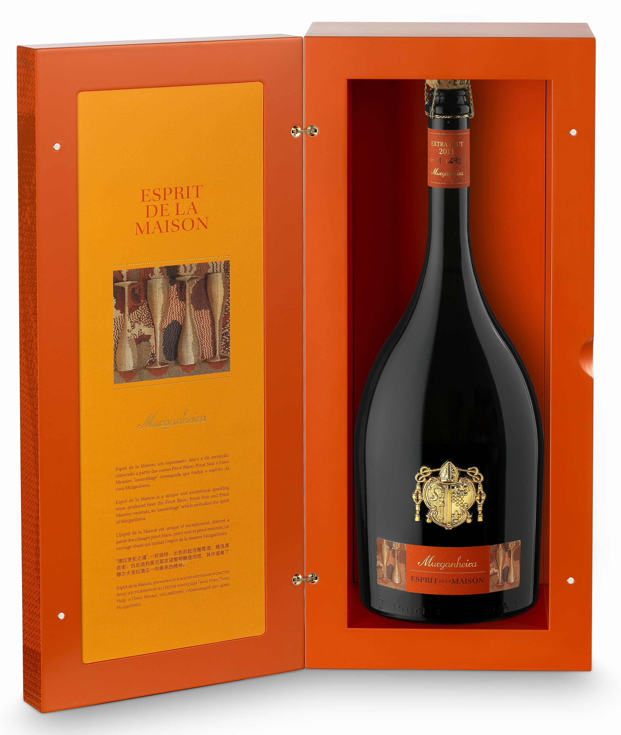 Murganheira Spirit de La Maison de cor Champanhe. Aroma de uma complexidade aromática impressionantes, com biscoito, brioche, citrinos, especiarias, entrelaçados num conjunto de enorme requinte. Na boca a fruta de notável qualidade, a bolha finíssima desfaz-se na boca cremosa, o vinho brilha intensamente em frescura, sofisticação e classe.